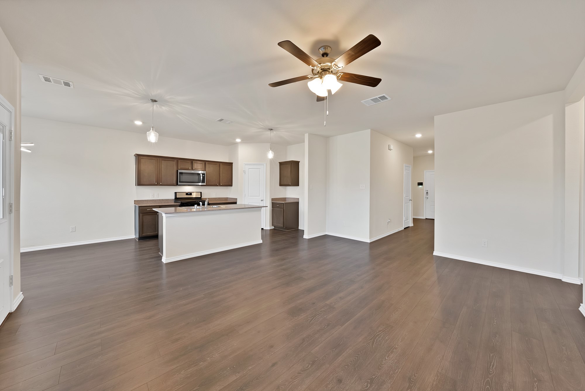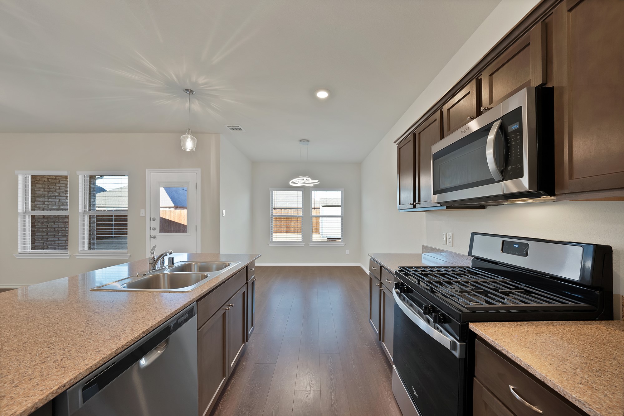 Welcome to this beautifully upgraded single-story home in sought after Winchester Crossing. Built in 2022 by D R Horton, this 3 bed, 2 bath home stands out from nearby new construction thanks to extensive post build upgrades already completed, saving the next owner significant time and expense. The curb appeal shines with a charming covered front porch and newly installed gutters. Inside, the open concept layout is enhanced by continuous flooring throughout the entire home with no carpet anywhere. The kitchen is bright and welcoming with beautiful cabinetry, upgraded lighting over the bar, and a spacious dining area that flows seamlessly into the comfortable living room. Thoughtful upgrades such as updated light fixtures, added hardware, and window blinds on every window elevate the space beyond builder grade. All bedrooms are generously sized, with added ceiling fans. The primary suite is a true retreat featuring a large bedroom, bath with open shelving, a large walk-in shower, a separate toilet room with added storage cabinetry, and a spacious walk-in closet. The backyard is one of this home's highlights; Enjoy a covered patio large enough for full outdoor furniture sets. A professionally installed single Tuff Shed remains with the home, offering excellent storage. The yard also includes a convenient dog access door. Additional major upgrades include a whole house water treatment system installed in 2023 with a new transformer added in 2025, a new roof in 2024, added laundry room cabinetry, and a two-car garage designed for function and organization. The home is also equipped with 5G internet for modern connectivity. Now vacant and move in ready, and a newly improved price, this home offers exceptional value compared to new construction where similar upgrades can easily add tens of thousands after purchase. Winchester Crossing residents enjoy a community pool, pond, playground, and easy access to Highway 380, all within Princeton ISD.